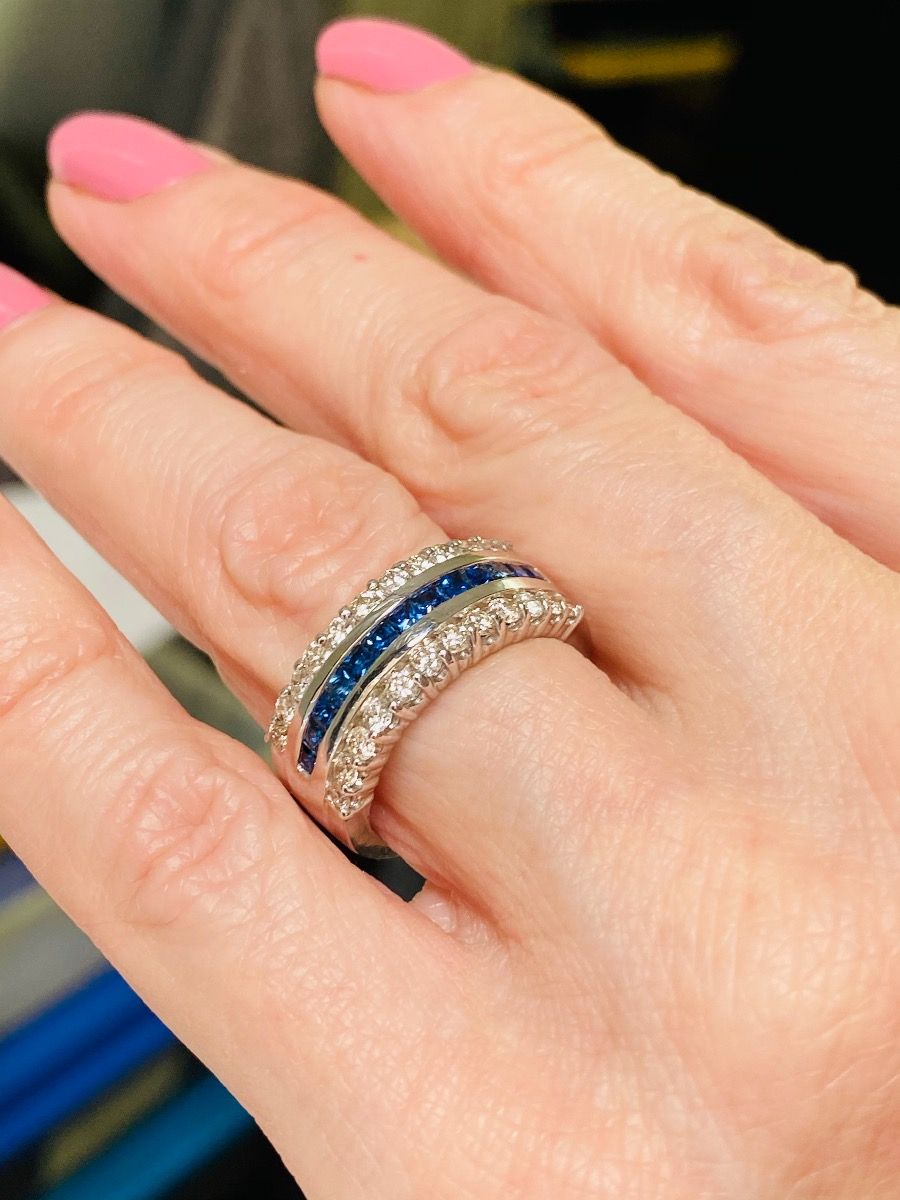1.64 Ct Princess Cut 3 Rows Diamond Engagement Ring 14k Gold