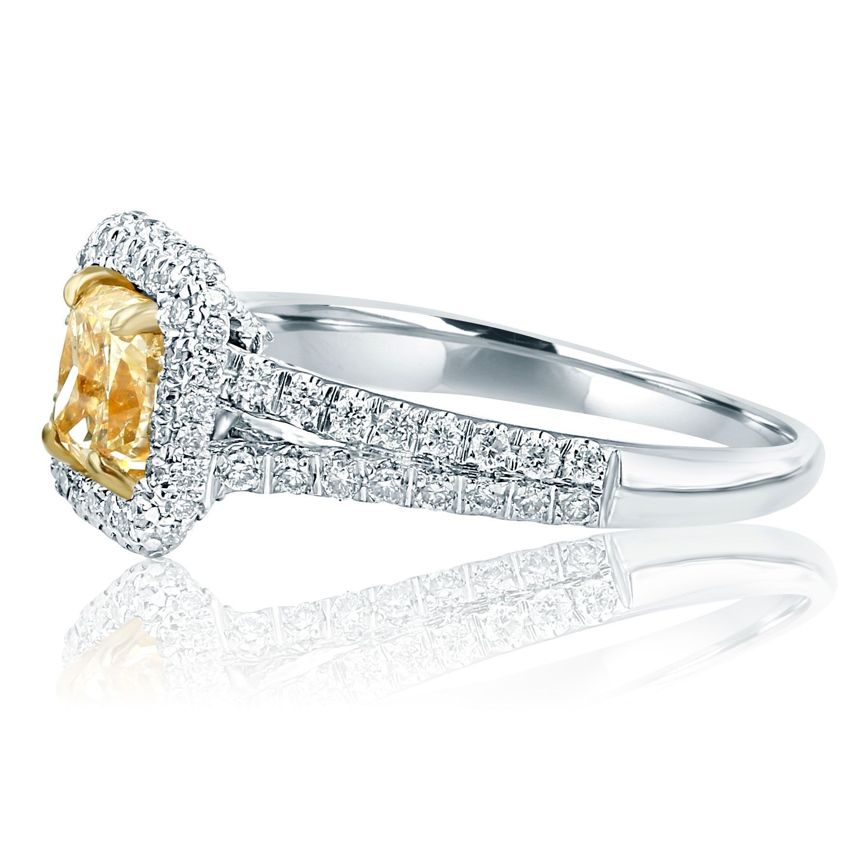 GIA Certified 1.90 Ct Yellow Radiant Diamond Ring 18K White Gold