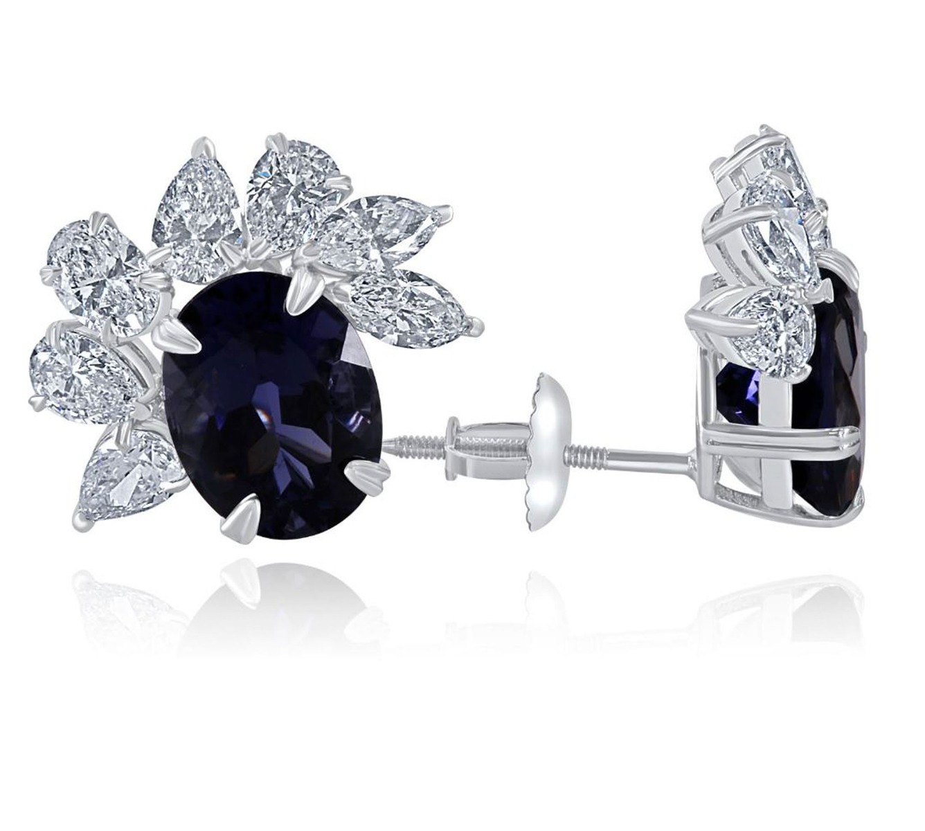 10. 5.30 Ctw Iolite Lab Grown Diamond Cluster Earrings 14k White Gold