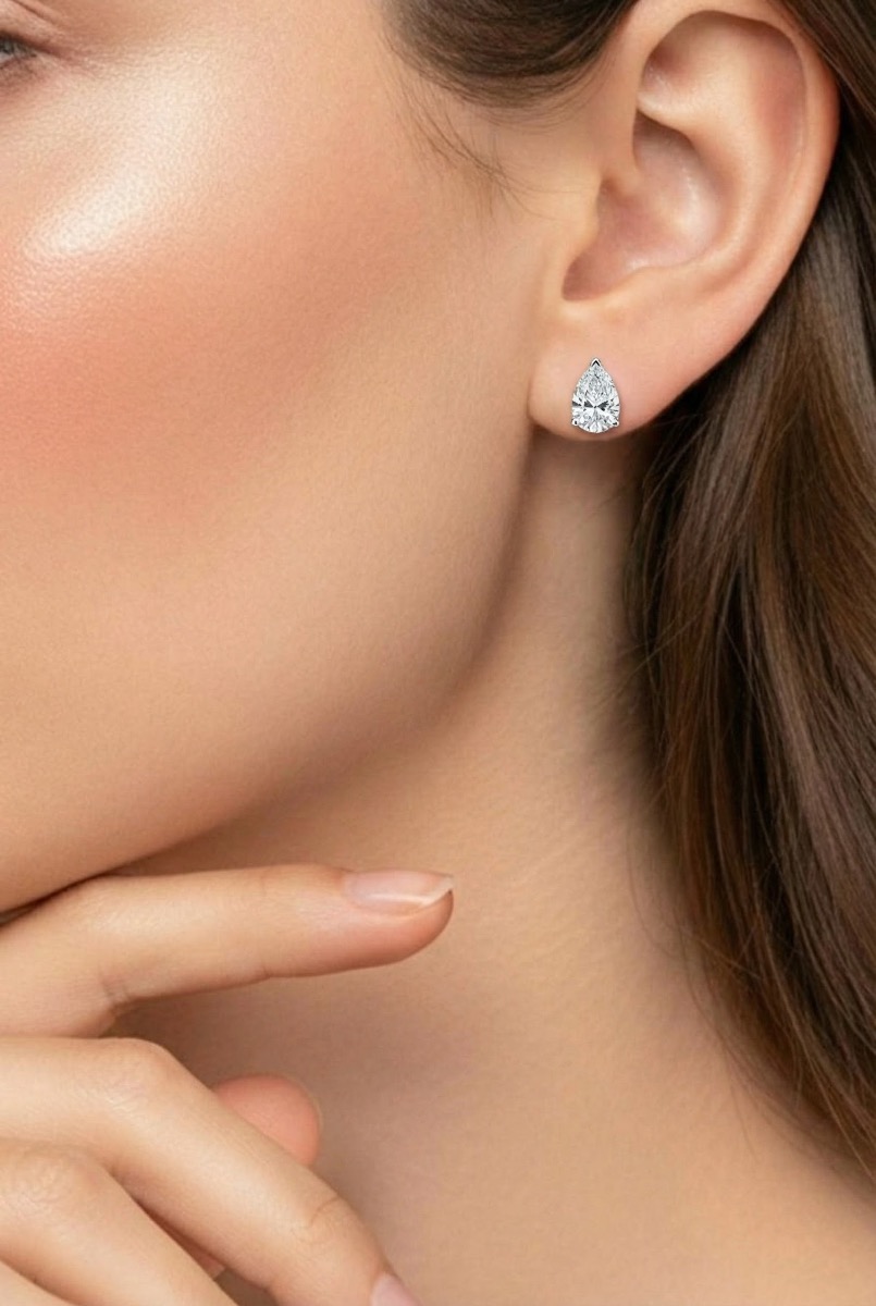 1 Ct Pear Lab Grown Diamond Stud Earrings 14K White Gold