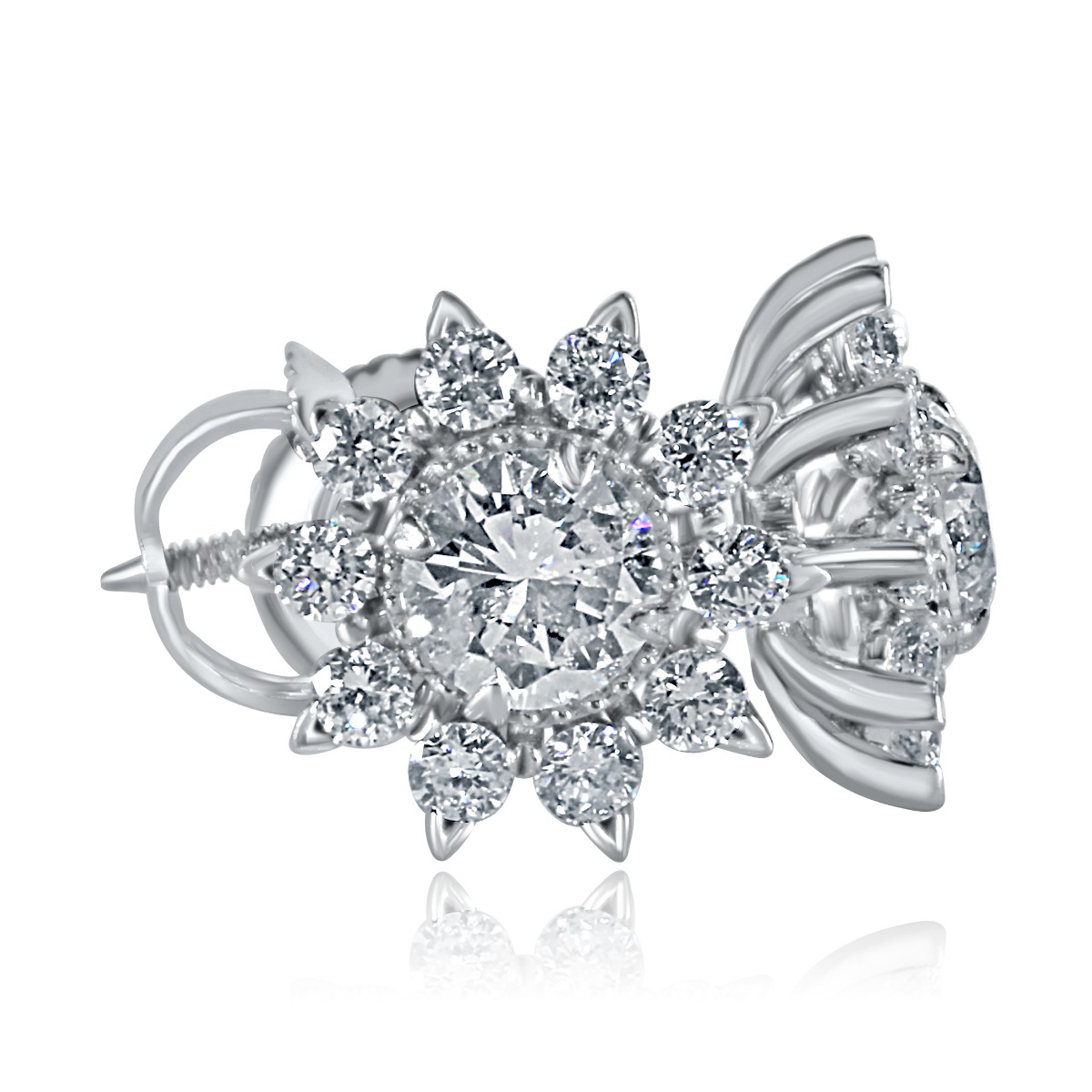 1.50 Ct Lab Grown Diamond Cluster Floral Stud Earrings 14K White Gold