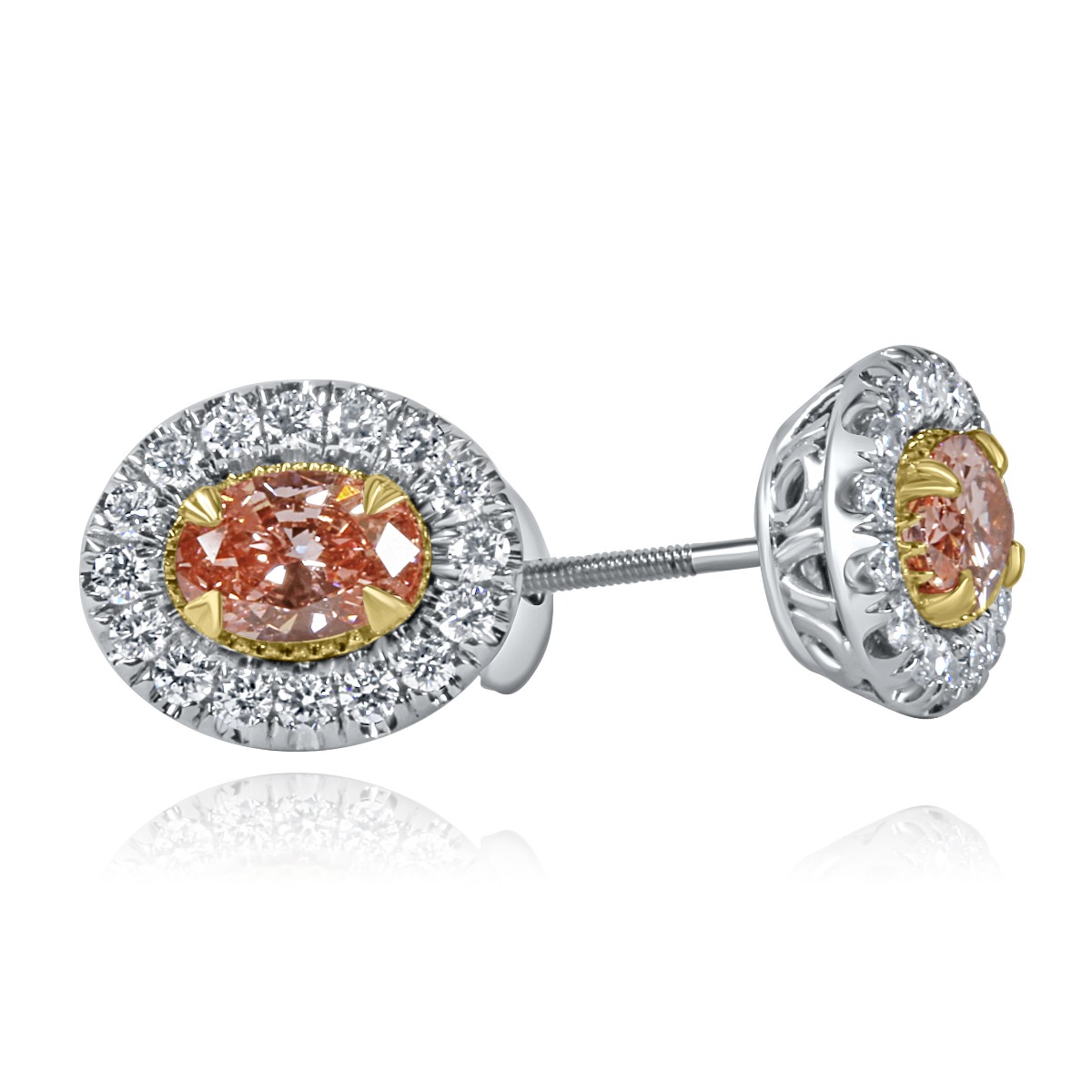 11. 1.20 CT Oval Halo Lab Grown Vivid Pink Diamond Stud Earrings 14k White Gold