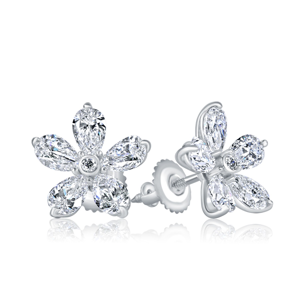 18. 3 Ct Lab Grown Diamond Cluster Floral Stud Earrings 14K White Gold