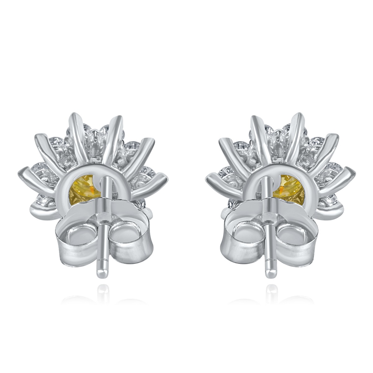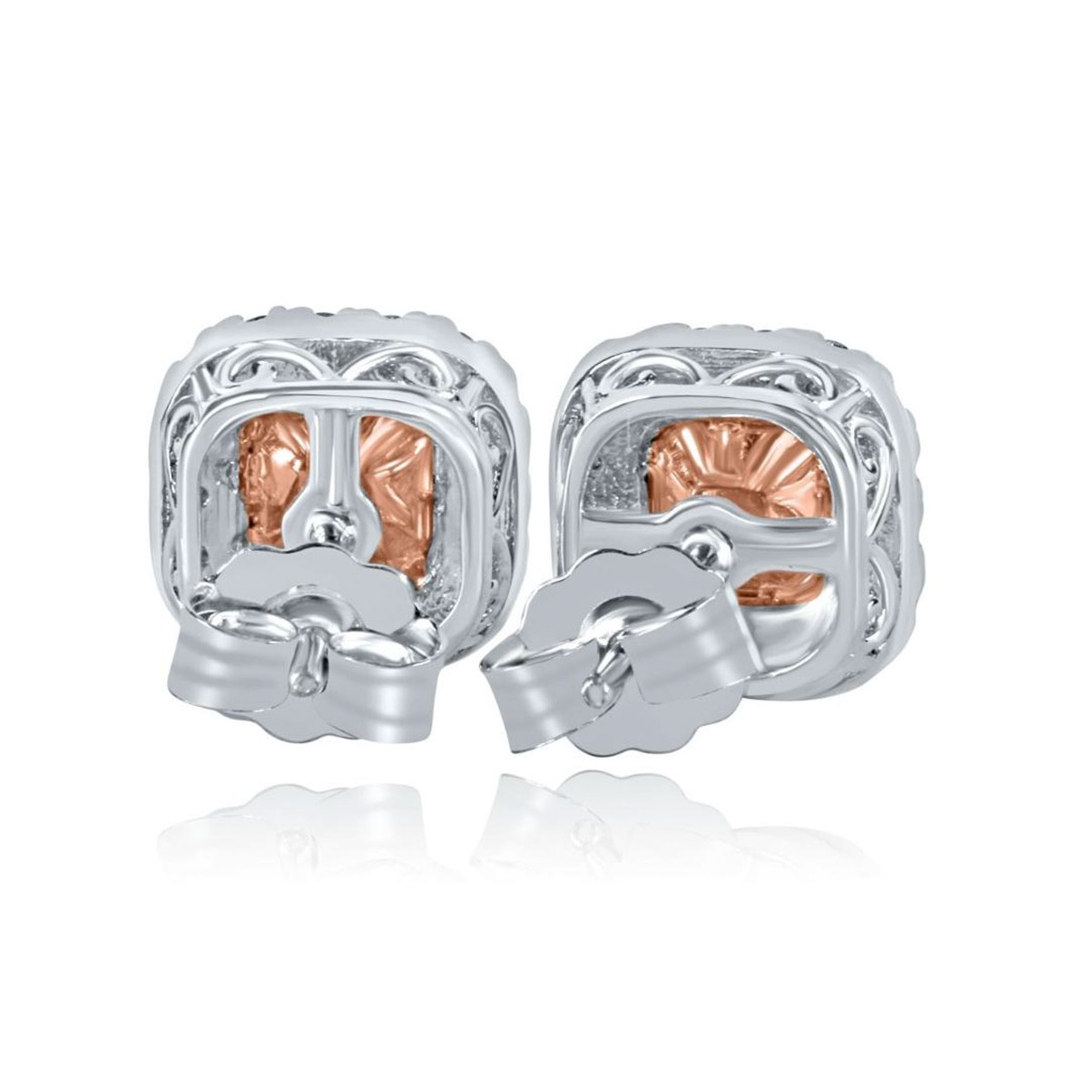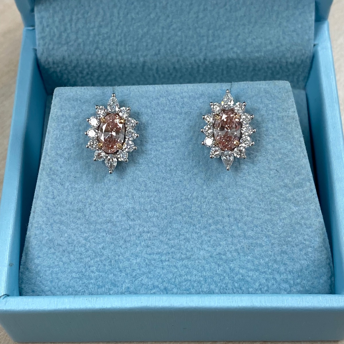 12. 1.67 CT Oval Lab Grown Pink Diamond Sunburst Stud Earrings 14k White Gold
