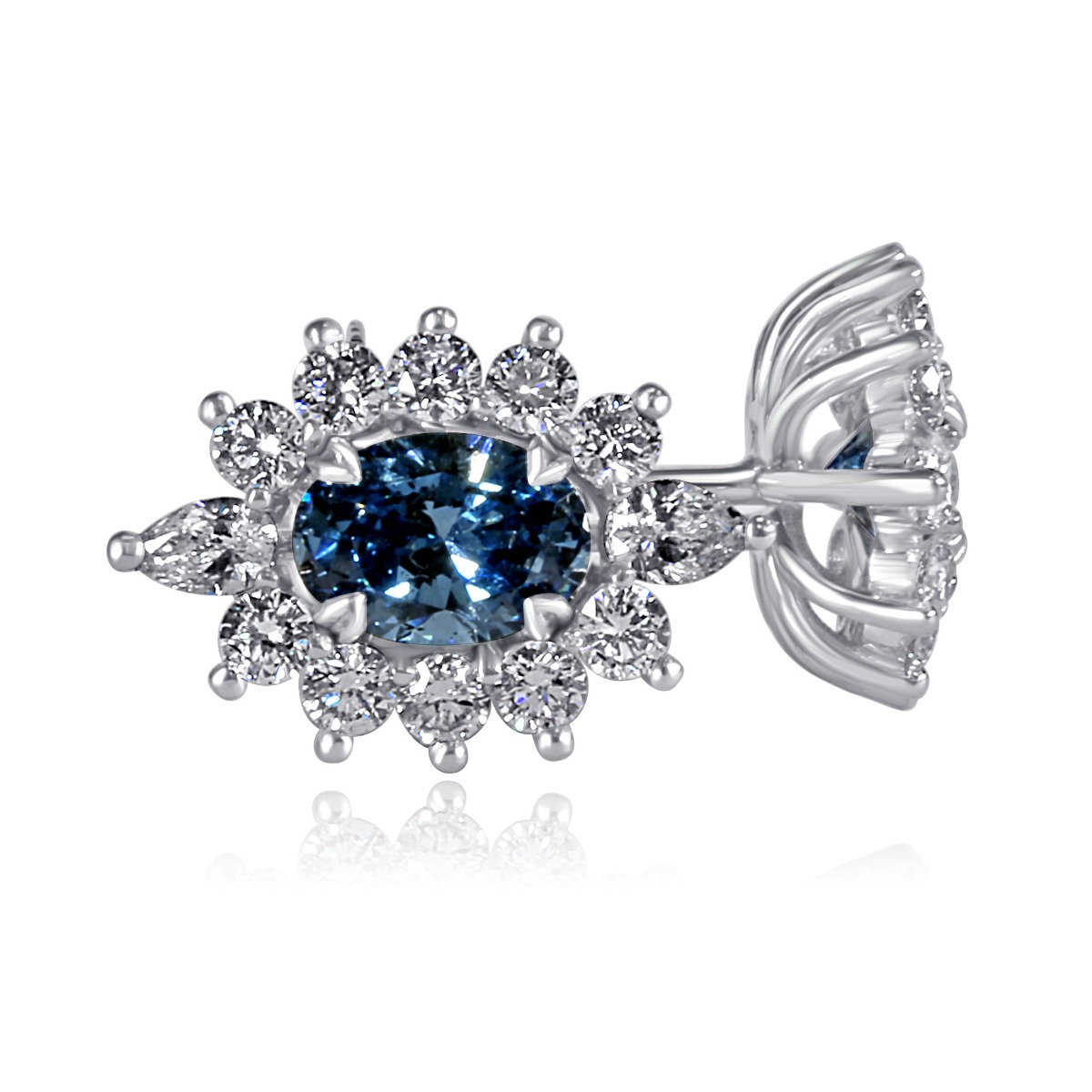13. Oval Lab Grown Blue Diamond 1.64 CT Stud Earrings 14k White Gold