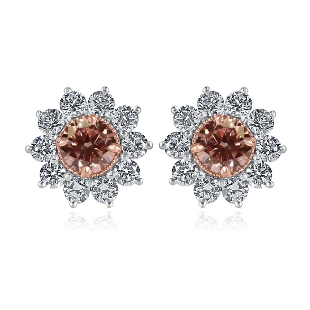 1.00 CT Round Lab Grown Pink Diamond Stud Earrings 14k Gold