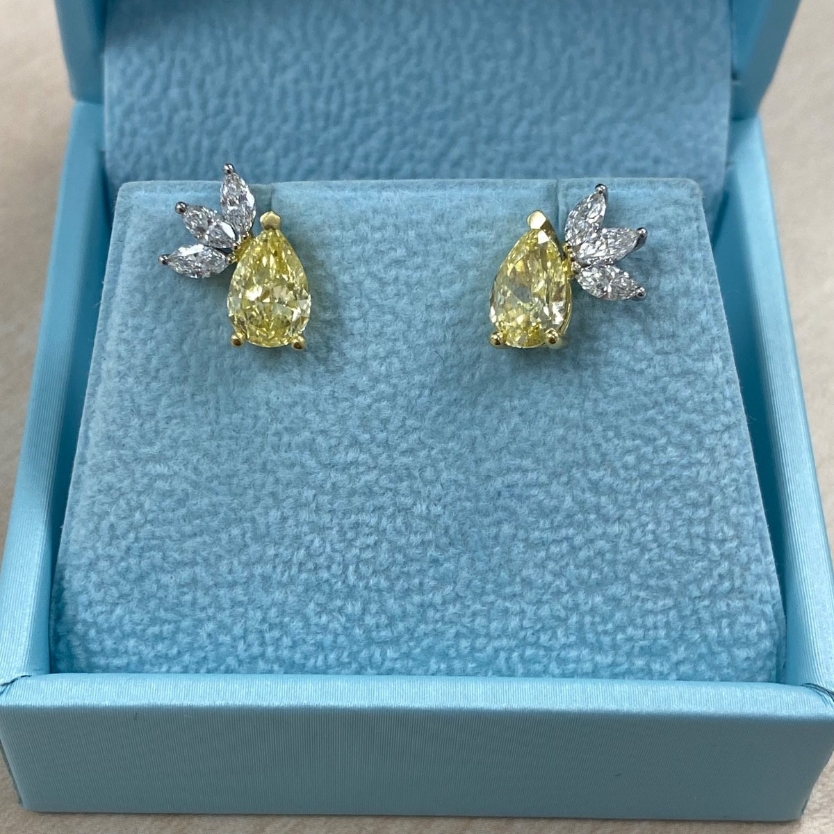 7. IGI 2.52 CT Pear Lab Grown Yellow Diamond Stud Earrings 18k Gold