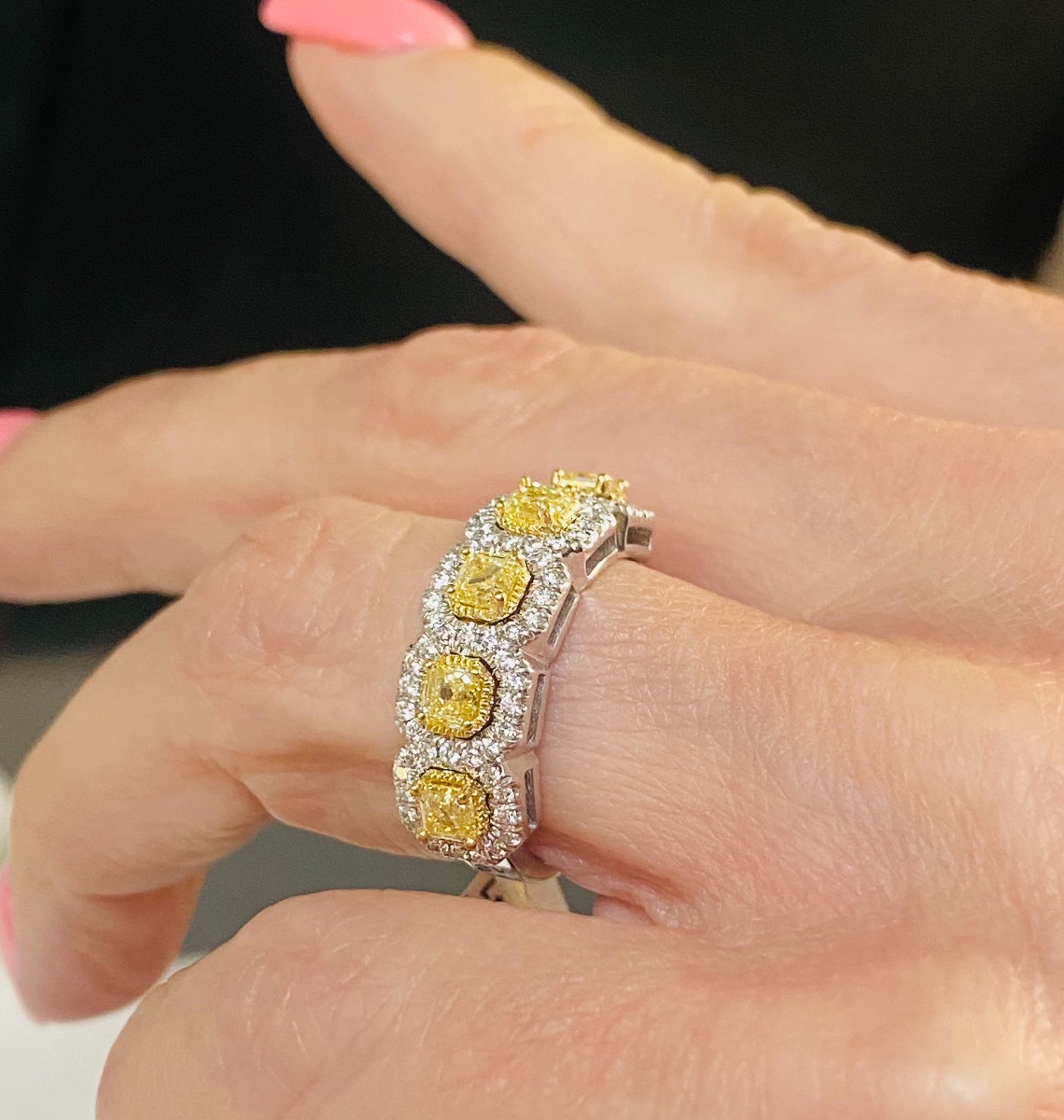 7 Stone Fancy Yellow 1.58 Ct Cushion Diamond Band 18k GoldSpecial Price $3,539.40 Regular Price $5,899.00 save $2,359.60 40% OFF -
